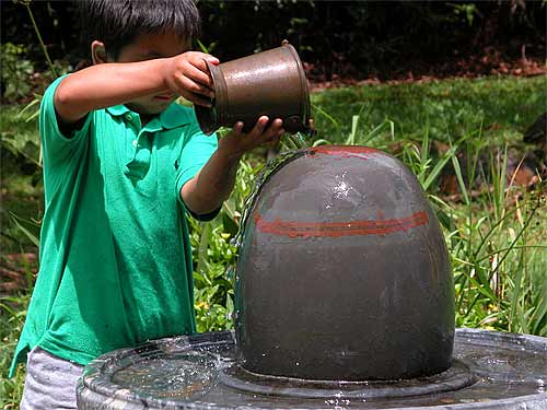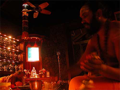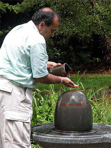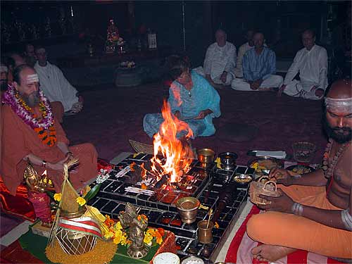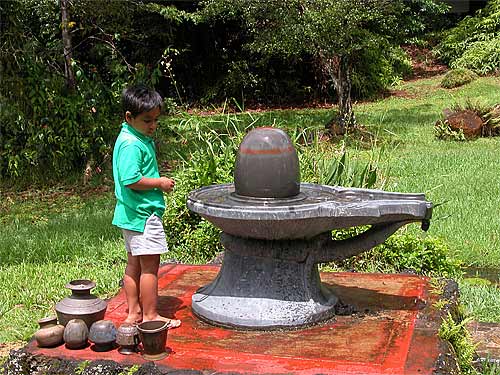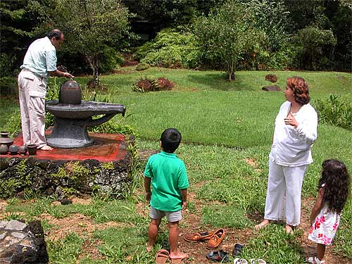 They also attended the early 6 am homa at the beginning of the day. Here they offer abhishekam at our Narmada Lingam.