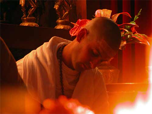 Sadhaka Tejadeva is back home after his time in the world where he studied welding in Honolulu and also spent time in California with his family... Here he is writing prayers...