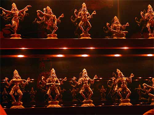 The poses of Lord Shiva performing the Tandavan dance come alive in the early morning light in the temple.