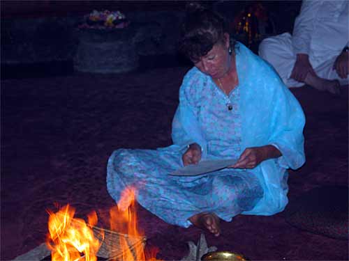 With Satguru Bodhinatha Veylanswami, all the monks, and devotees and the fire as witness, she recited three times aloud: