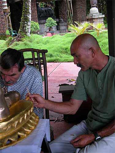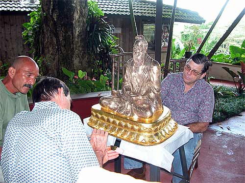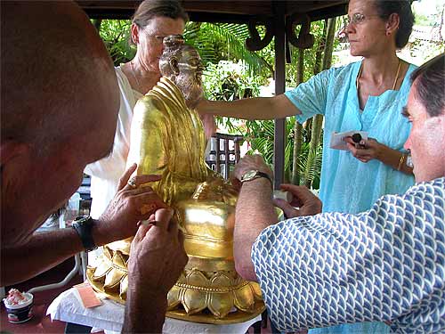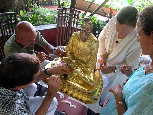 We were delighted to see Gurudeva out in the open. He has such a happy smile... it seemed to get wider and wider as the gold was applied.