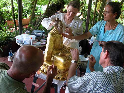 It wasn't long before the bottom portion was complete and then more sizing was painted over Gurudeva's body and allowed to dry over the mid-day period.