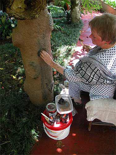 Gayatri is also painting the granite stone "log" to look like an actual wooden log...
