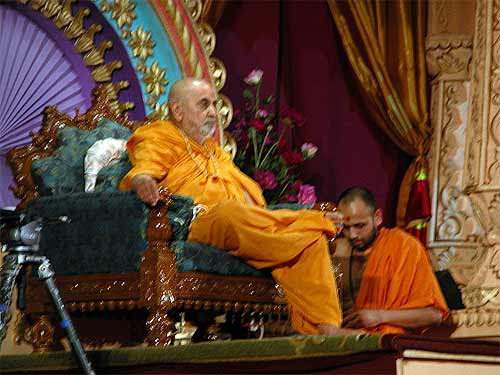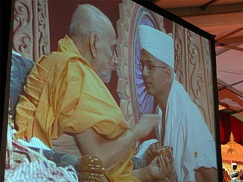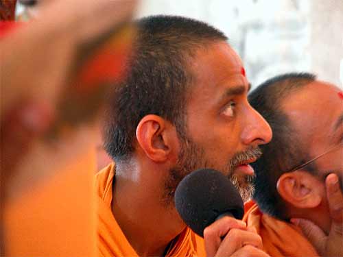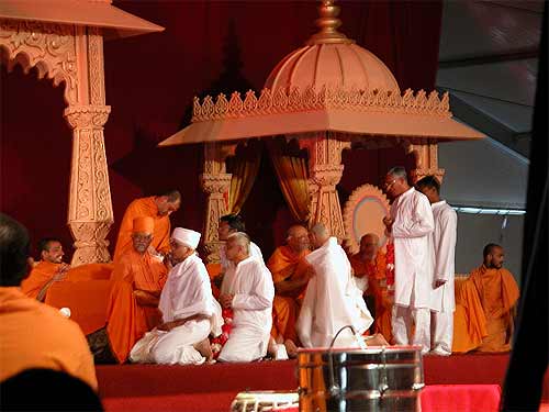 Bodhinatha was invited to give a talk, which was by far the most clearly presented and most audible of them all. Everyone listened carefully and absorbed his message, which was all about the Swaminarayan group. All the events today were being live webcast and telecast on TV to 160 countries, in the US on the channel called TV Asia, and in India on Ashta, the major religious TV channel there. Hopefully somebody will send us a tape. We'll ask the swamis tomorrow also...