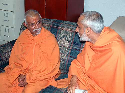 Another thing we wanted to mention that has been happening is that numerous people have come up to Bodhinatha and introduced themselves as Hinduism Today subscribers. There are lots of them amongst the Swaminarayan grihastha membership, and they just love Hinduism Today. They walk up and say things like, "Oh, it's so wonderful to see you! I am a Hinduism Today subscriber! We love your magazine!" Very nice support.