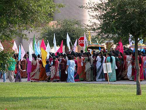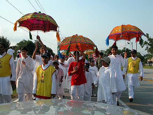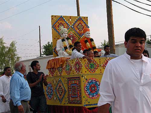The parade ended at the mandir.