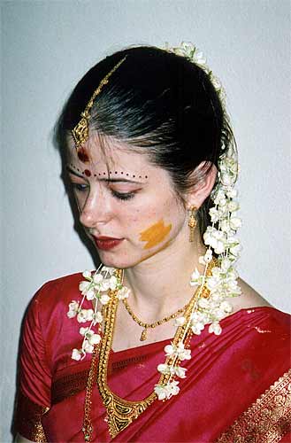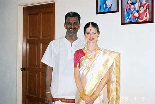 Sivaram and Devika after the nalunggu, still wearing plenty of chandana.