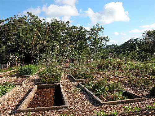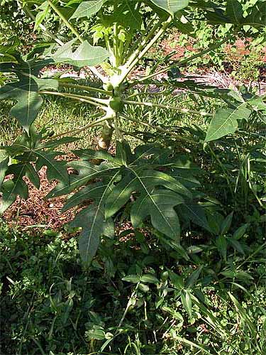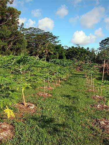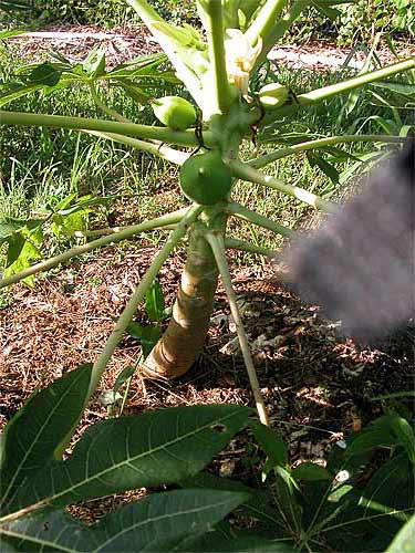 We are working on growing more papayas, daily fare for the monks' breakfast. Here is a new orchard that was planted earlier this year...