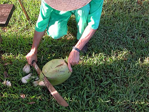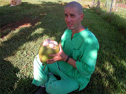 Young coconut water and a brief respite in the shade before Sadhaka Tejadeva goes back into the sunshine.