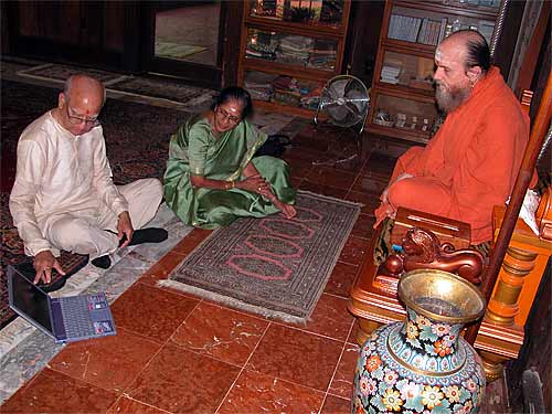 Today, we are editing the articles for 'Hinduism Today'. I don't have to do much editing. It goes through several editors before it ever comes to me and I listen to each one on my computer reading it to me. We have a supercard, voice control program. Works out very, very well. Each one has to have an OK from me, before it is printed.