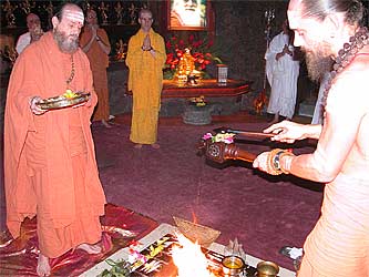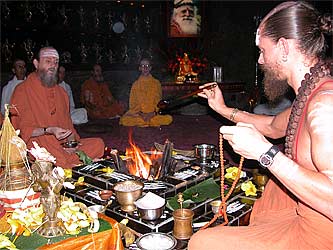 Gurudeva sitting before the homa fire on a Sun One... like today...