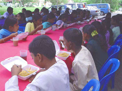 Students enjoying their meal during their lunch break.