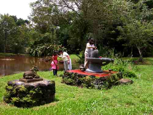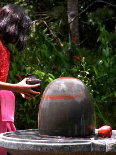 A Hindu family walks the Path of the Saiva Saints. Everyone loves to do their own abhishekam to the Narmada Lingam.