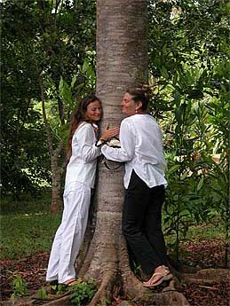 Cheryl Carter and her daughter Katharine who are visiting from San Francisco were among our guests this morning. Cheryl had met Gurudeva in September 2001 and on this trip to Kauai she decided to bring her daughter along. Gurudeva always encouraged devotees to hug the healing rudraksha trees.