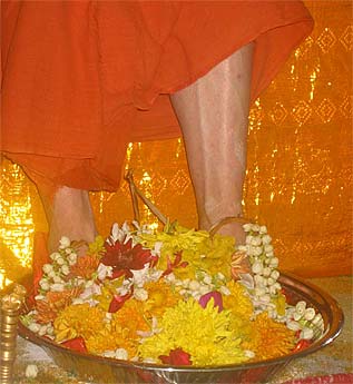 Satguru's Tiruvadi decorated with garland and flowers after the Abhishegam
