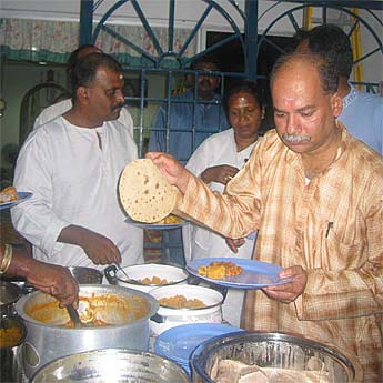 Members and guests enjoying their dinner after Satsang...this is Narayanan Venkatakrishnan from Madras who helped so much with the last Innersearch. It just so happened he had the good karma to have a job take him to Malaysia, just when Bodhinatha was passing through.