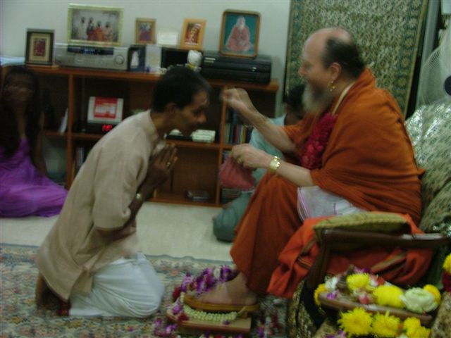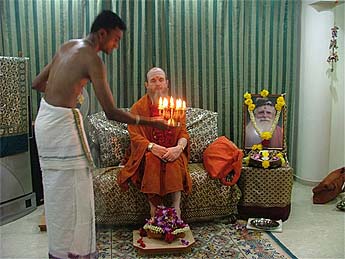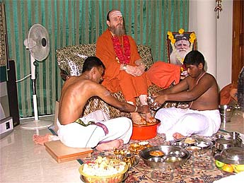 Bodhinatha goes into deep meditation as the padapuja progresses. The room is filled with a strong and peaceful vibration. During these moments of intense devotion we truly see Lord Sadasiva seated before us.