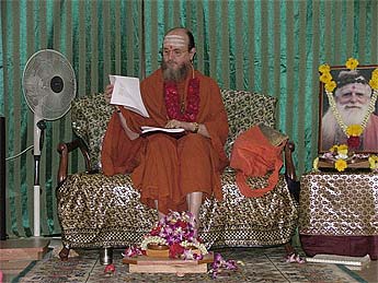 The Karma yogis at the Muruga Mandapam had the chance to meet Swami Chitsivananda from the Divine Life Society. The swami is from the Sri Santi Ashram, Hyderabad, India and said the spot at the Muruga Mandapam is wonderful for meditation.