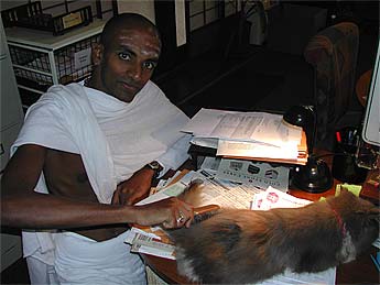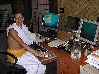 Our Pilliyar Kulam building at the front of 107 Kaholalele Road is undergoing major renovation and the monks serving there have moved into the other kulam offices for a while.. .Here is Sadhaka Jivananandanatha in the Ekadanta Kulam...