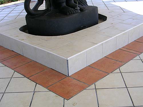 New tiles have now been laid on the floor of the Muruga Mandapam. The base at the large granite murthi is beautiful and cooling with the sea breeze constantly blowing over it.
