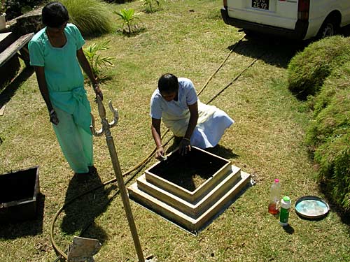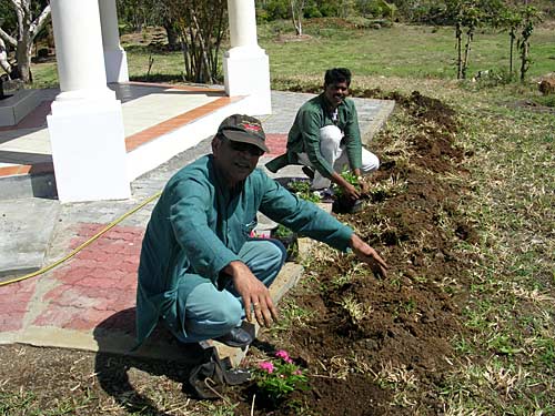 New flowering plants are being planted around the Muruga Mandapam. Kulapati. Kulagan and little Sivarathna are busy with this task...