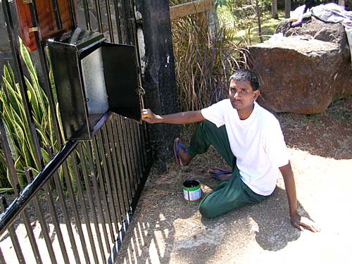 Here is Karthigeyan Manick. His main responsibility was to freshly repaint the main iron gate.