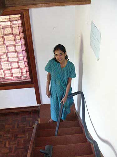 Anjeenee Devi cleaning the steps...