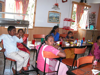 And then it's off to Kulapati Mougam Pareatumbee's Pizza & Tandoori restaurant for a fancy lunch prepared by his expert staff of chefs, shown here afterwards