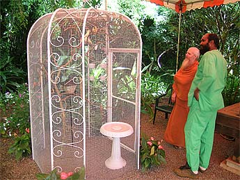Thanks to some generous benefactors we have a new bird aviary out front in the Banyan Mandapam where visitors can enjoy them. The Aadheenam has always kept birds. Gurudeva loved them, but our big aviary that has cockatails, parakeets and finches is in the cloistered area of the monastery, so out of sight of guests.