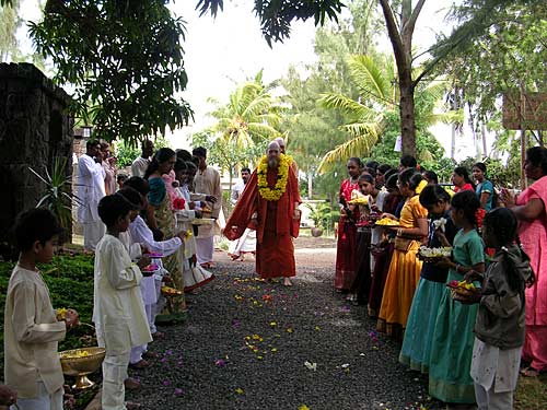 Of course the important news of the moment is Bodhinatha giving initiations in Mauritius. It's Saturday, the 18th.... a day reserved for the members and sishya at the spiritual park.