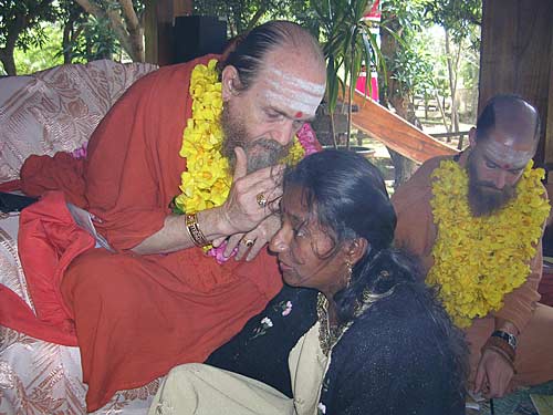 Kulamata Sornumbal receiving vibhuti...Bodhinatha gave a very nice speech on that evening stressing on japa and anger management.