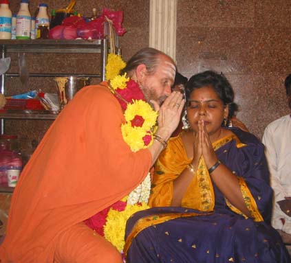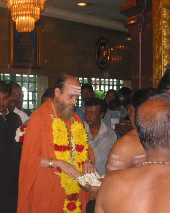 Priest performs archana under Satguru's name for Lord Ganesha at the Pudo Kottu Malai Pillaiyar Ganesha Temple. A small but famous and powerful shrine, known throughout Malaysia as a place where Lord Ganesha has granted the prayers of many in miraculous ways. Innersearchers may recall our visit there in January this year.