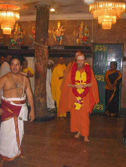 Satguru is then escorted around the temple...