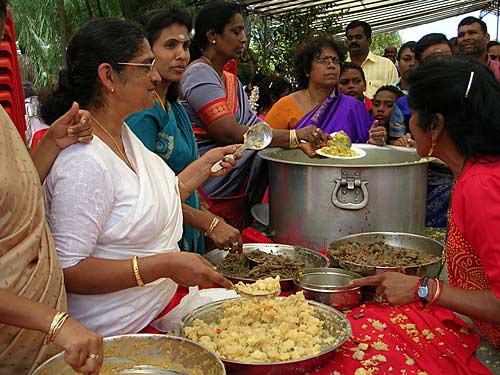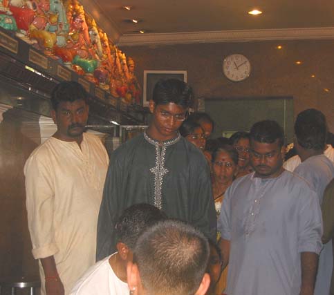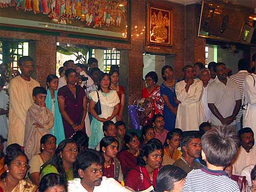 The Mandapam hall is packed to capacity and visitors are queuing up outside to make their offerings to Lord Ganapati