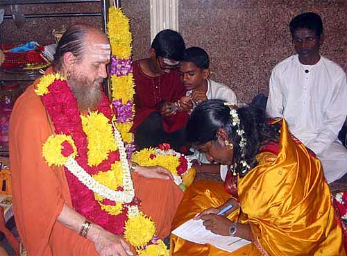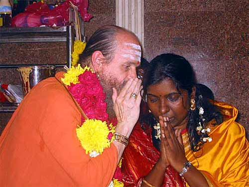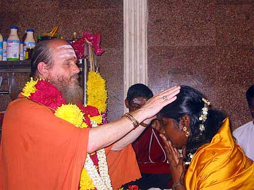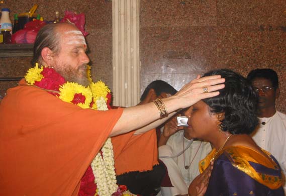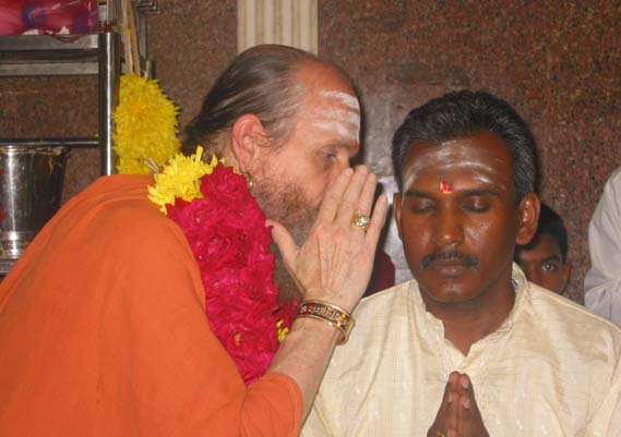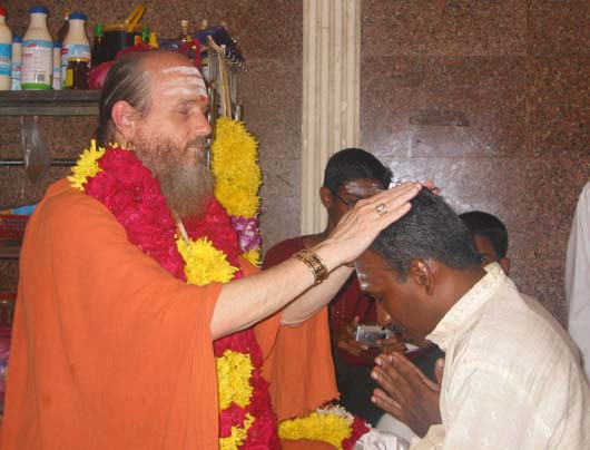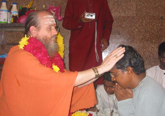Brother Gunasegaran was one of them...Bodhinatha give the mantra in the right ear, then blesses the devotee with his hands on their head and then gives vibhuti.
