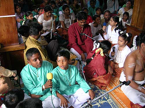 The children are singing devotional songs which they have been rehearsing for several weeks.