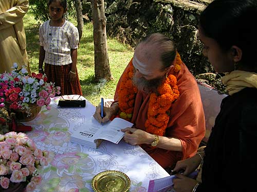 Book signing was one of the main activities for Bodhinatha on that day. Here Bodhinatha is signing a Loving Ganesha book. Bodhinatha said in His talk: