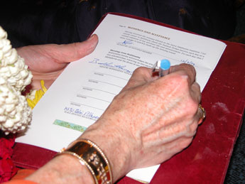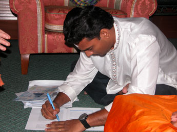 Sivanathan is becoming an Arulsishya (one step before official membership in Saiva Siddhanta Church) and signing the special vows of vegetarianism, tithing, ahimsa and loyalty to our guru lineage.