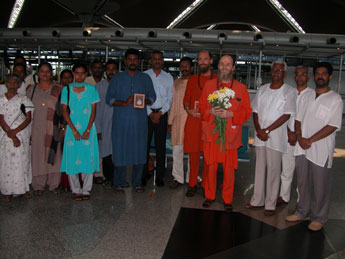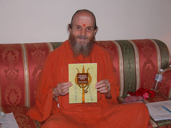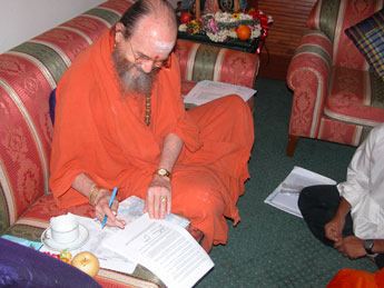 Bodhinatha displays a copy of the new Panchakshara Mantra booklet, wherein he assembled all of Gurudeva's teachings about the Namasivaya mantra, including how, where, when and why to chant it. A copy of this booklet is being given on this trip to every sishya who has received samaya diksha.