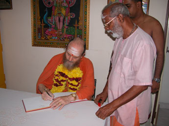 Bodhinatha signing the official guestbook of the Gasing Sivan temple