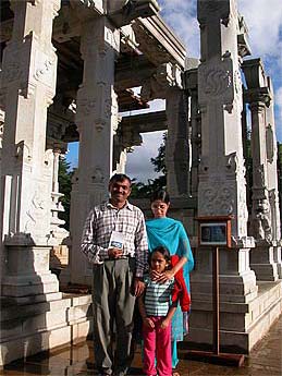 Here is a their daughter, Surabhi, standing next to one of Iraivan's lion pillars.