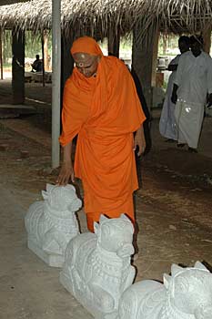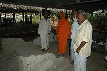 Swamiji looking at the Hasti ( entrance stones/steps to the main sanctum) There will be 5 steps leading to the sanctum and each stone will have the letters, NA,MA,SI,VA,YA carved in Tamil at the center.