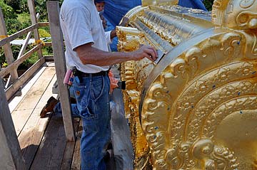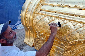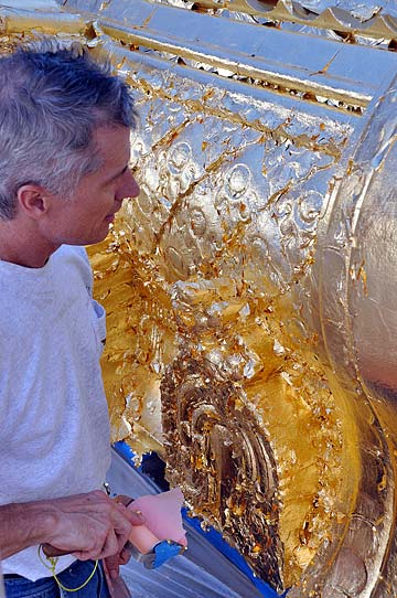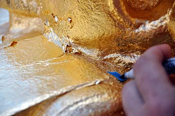 William is laying down the gold leaf.