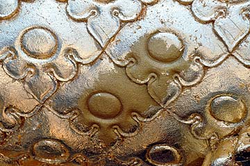 If you look closely you can see the small blue flecks indicatings spots where gold leaf will be applied again.