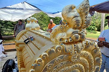 Sun Two was another, literally golden day at Kauai Aadheenam. Light morning showers were followed by sunlight and everywhere light was glistening, but nowhere as brightly as on top of the Iraivan temple.