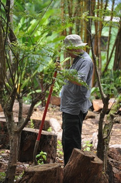 June 11, 2009Aran Veylan from Edmonton, Alberta, Canada, is here on Task Force. This morning he was contemplating the many wonders of Siva's Garden of Life.