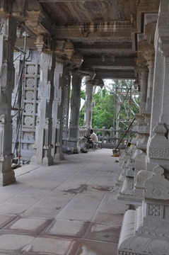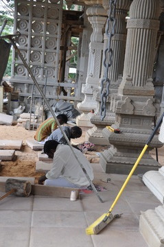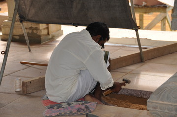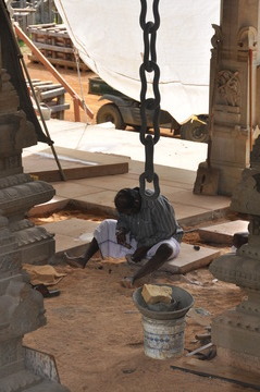 On the roof, Yoginathaswami consults with Deva Rajan. Plans are evolving for the next water-proofing membranes.