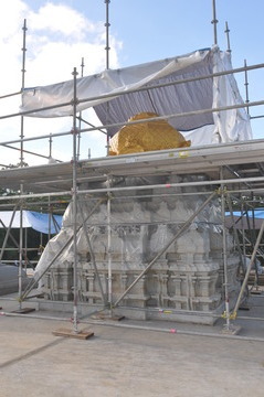 The main vimanam will be next. It is covered with plastic today to keep it clean.