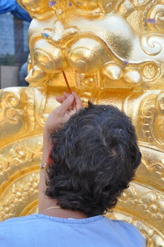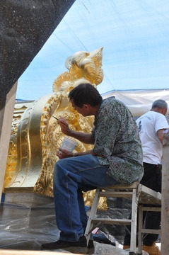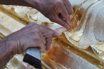 The professional gilders' hands have done this a thousand times. They did the New York Life Insurance building, a Morman temple and a US Sikh temple, the Georgia State Capital, the Library of Congress and more. Now they can add America's only all-granite temple to their portfolio.