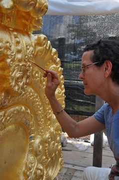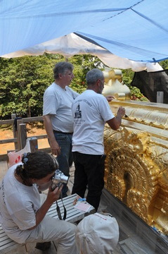This team knows its gold. And they have told the swamis a dozen times how special this job is to them, and how honored they feel to be gilding such a sacred and artistic masterpiece. Jill documents the project for their website portfolio.